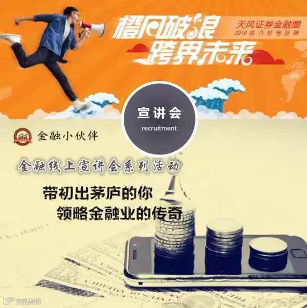 为满足广大学子的校招求职需求,金融小伙伴携手天风证券金融圈重磅推出大型线上宣讲会活动,小伙伴将和和天风证券金融圈依托微信平台及微信群传播速度块、定位精准的优势为广大学子拉开秋招的序幕。