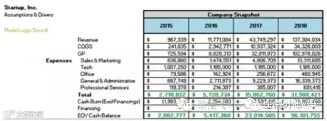 迈克尔还指出,另一个值得一提的是,尽管说出来有些可笑,当建立模型的时候首先需要考虑到用户需求,哪些重要哪些不重要。正如他常常对企业提出的建议,何必提前过渡耗费精力去设定成千上万的假设和繁琐的输出,建造一些超级复杂的细化到每天或每周的模型。多数时候,潜在的投资者们可能只是想要参看公司过往 12 个月的历史数据和未来 24 个月经营预测。