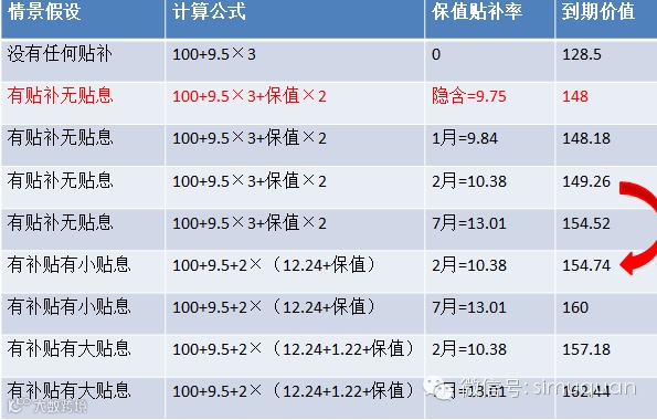 但是,7月份的保值贴补率是不知道的,春节后2月份的保值贴补率也公告出来,10.38元,这样到期价值为149.26,这完全不有利于空头——即使没有贴息的情况。没有任何分析能力,按照金融学假设就是等价鞅,也就是2月保值贴补率=7月保值贴补率。