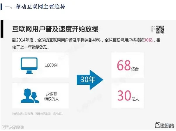 导读:移动互联网那个主要趋势是用户普及速度开始放缓