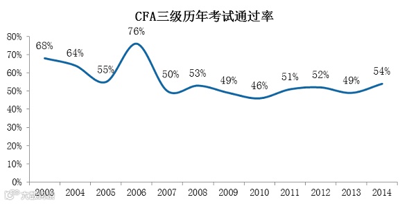 近十年CFA一级、二级、三级考试通过率的情况如下