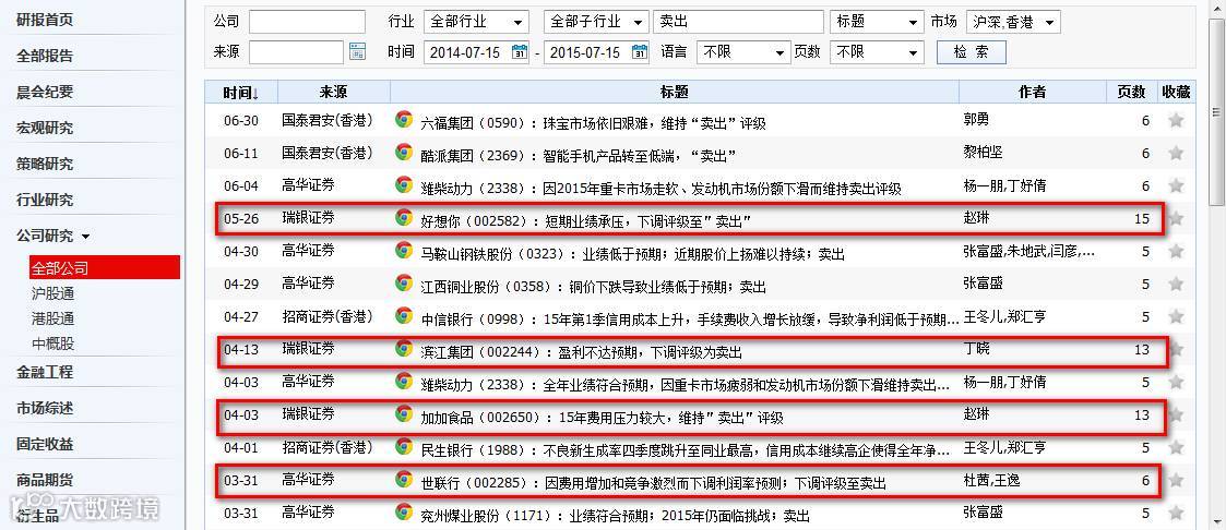 去数据库里搜了一下研究报告,筛选出卖出评级的,很遗憾,要么是国外券商对A股给了卖出评级,要么是咱们国内券商给海外上市公司卖出评级,国内券商给A股卖出评级的,还真真儿是少见。比较符合题主意思的大概是下面这几个: