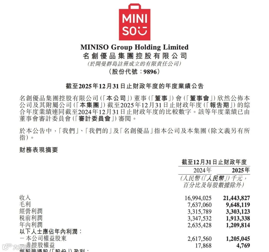 名创优品2025年总收入214.44亿元,同比增长26.2%;调整后净利润28.98亿元。全球门店总数8151家,TOP TOY海外门店达30家。内地会员超1.12亿人,美国会员增长150.3%。