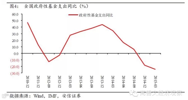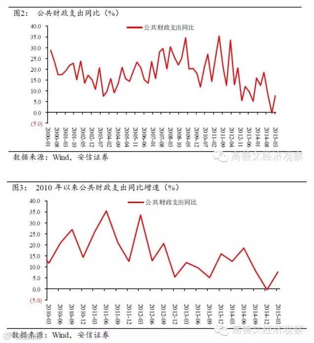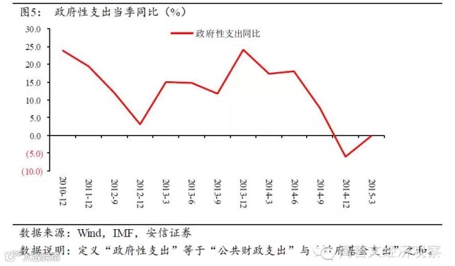 以此观察,2014-2015年广义财政支出的巨大下滑是显而易见的。
