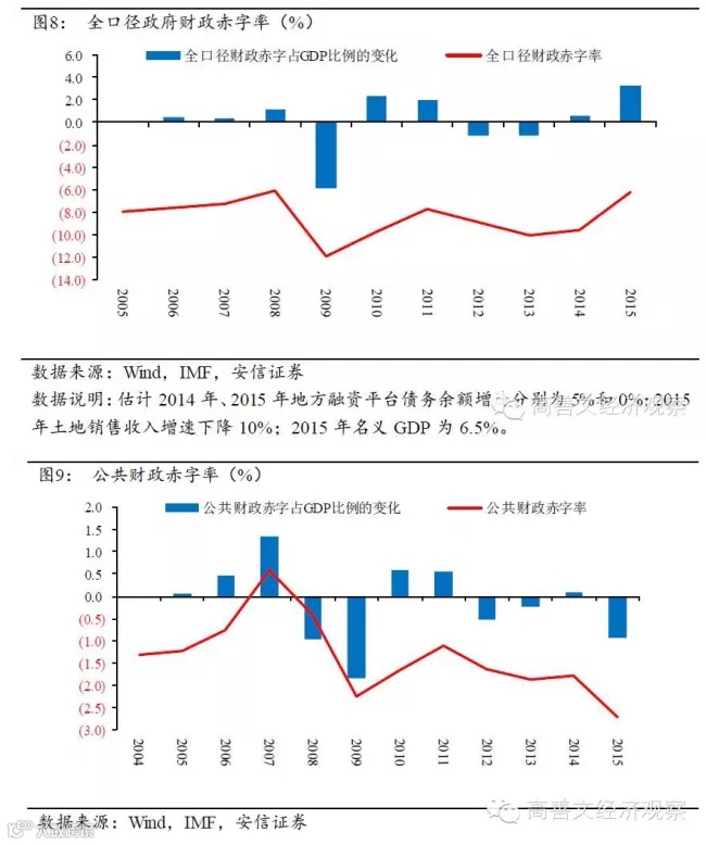 IMF扩展的财政赤字不仅包括了地方政府融资平台的市场融资和销售土地使用权的收益,还包括了社会保障基金和国有资本经营科目,因此可以视为全口径的政府财政支出。