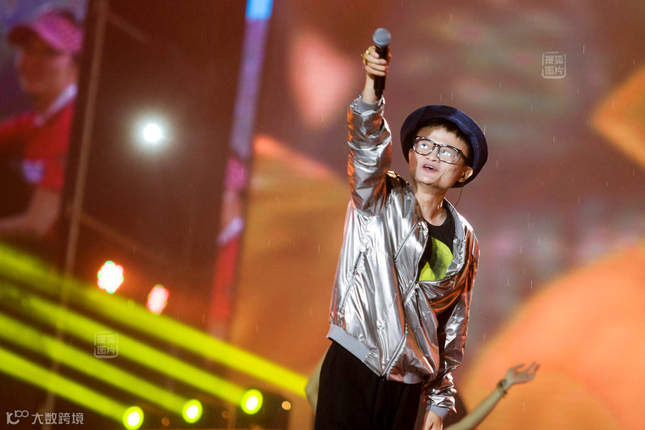 “潮人”马云行事一向是不拘一格,当年马云有令人羡慕的教职,在多数人看来那可是抢都抢不来的铁饭碗,但是马云断然辞去教席自己创业。图为2013年5月10日晚,淘宝十周年晚会在杭州黄龙体育中心开幕。马云一身潮流装扮,献唱《我爱你中国》和《朋友》,正式宣布卸任阿里巴巴CEO,并与新任CEO陆兆禧拥抱交接。