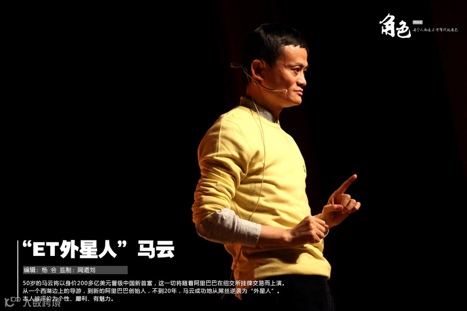今晚(19日),50岁的马云将以身价200多亿美元晋级中国新首富,这一切将随着阿里巴巴在纽交所挂牌交易而上演。从一个西湖边上的导游,到新的阿里巴巴创始人,不到20年,马云成功地从“屌丝”逆袭为“外星人”。马云本人也被评价为个性、犀利、有魅力。图为2014年3月18日,在北京大学百年讲堂举办的阿里巴巴技术论坛中,马云诙谐幽默地调侃了当前互联网市场,并希望更多优秀技术人才加入阿里巴巴。
