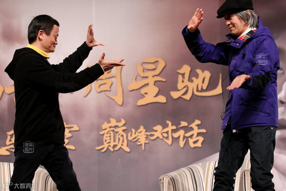 在大多数人眼中马云是个商界传奇,他却希望人们称自己为“太极拳师”。身上有太多的江湖侠气,而这不是在小说中,在阿里,马云不叫马云,叫风清扬。图为2013年1月4日,北京,马云与周星驰巅峰对话,切磋太极。马云曾说过“要让天下没有难做的生意”。周星驰也在电影里表达过“人如果没有梦想,跟条咸鱼有什么分别”。