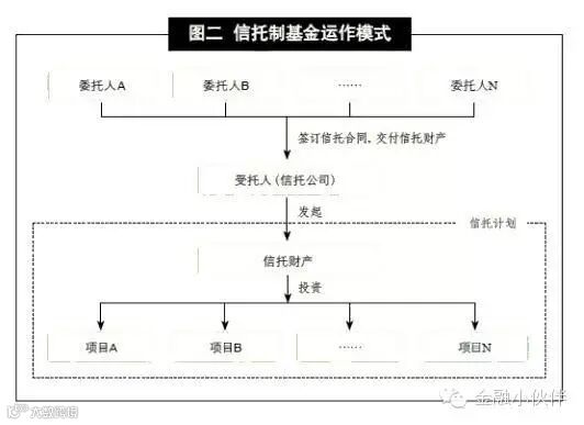 信托制特点:类似有限合伙,同样有免税地位;但资金需要一步到位,使用效率低;涉及信托中间机构,增加基金的运作成本。