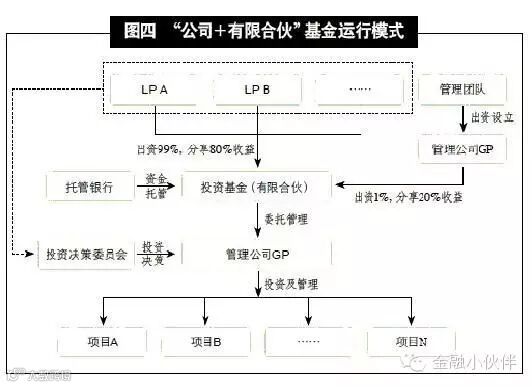 有限合伙制特点:普通合伙人(GP)与有限合伙人(LP)共同组成有限合伙企业,其中私募股权投资公司作为GP,发起设立有限合伙企业,并认缴少部分出资,而LP则认缴基金出资的绝大部分。GP承担无限责任,负责基金的投资、运营和管理,并每年提取基金总额的一定比例作为基金管理费;LP承担有限责任,不参与公司管理,分享合伙收益,同时享有知情权、咨询权等。