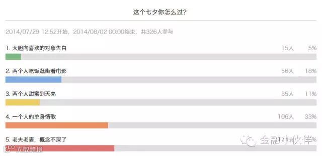 5%的人准备表白,33%寂寞少男少女要待在家,29%的情侣要柔情蜜意一起过(应该没有未成年吧!);剩下的35%老夫老妻,无所谓啦(不跟你们这群小孩一般胡闹)!