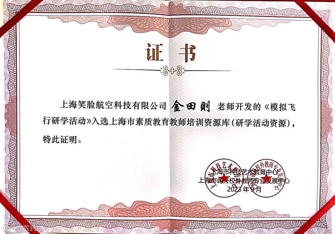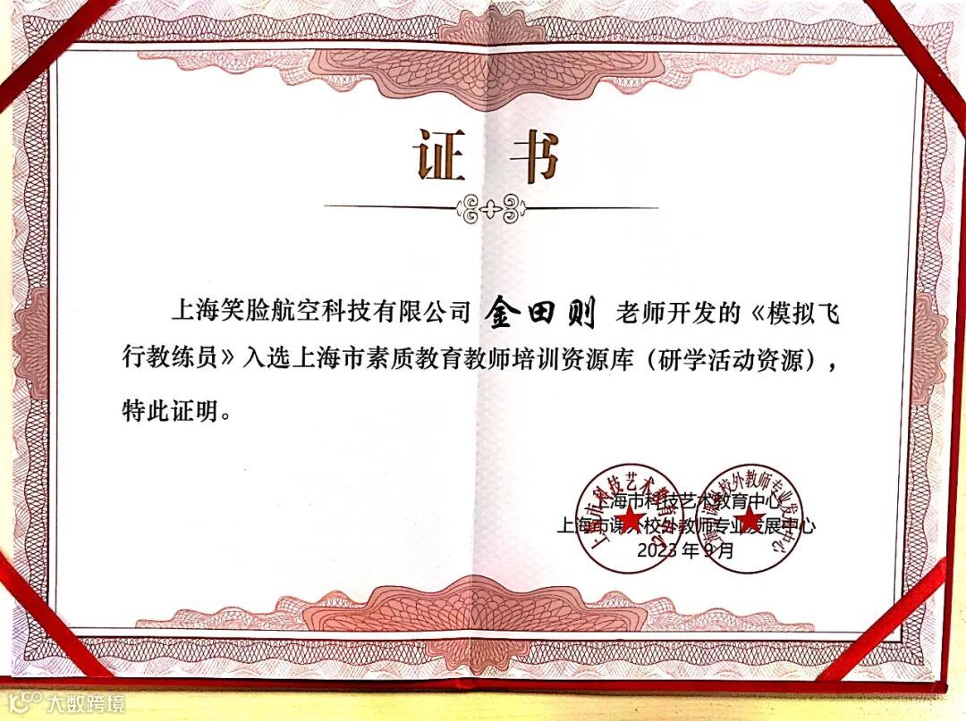 这不仅是对课程质量的肯定,更是对上海笑脸航空科技有限公司在教育领域贡献的认可。