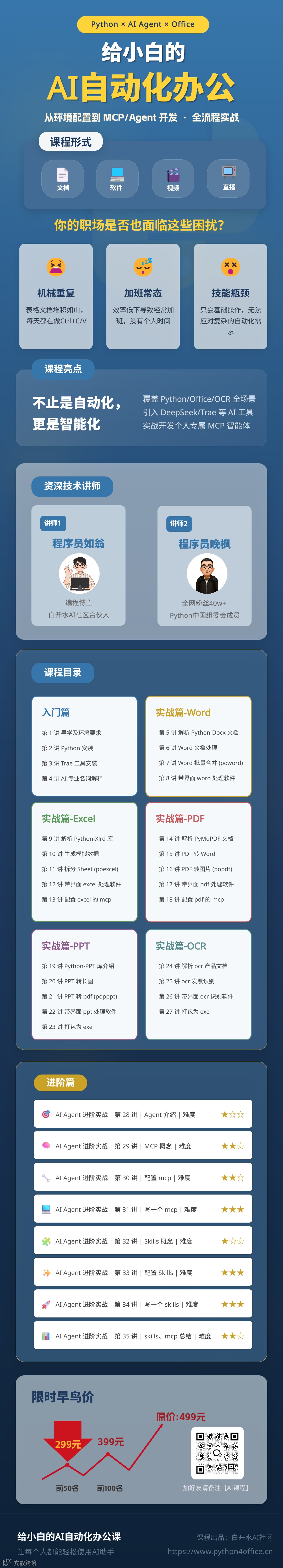 这不是一门枯燥的理论课,而是一套基于 Python × AI Agent × Office 的全流程实战秘籍。我们不仅教你写代码,更教你如何驾驭 AI!