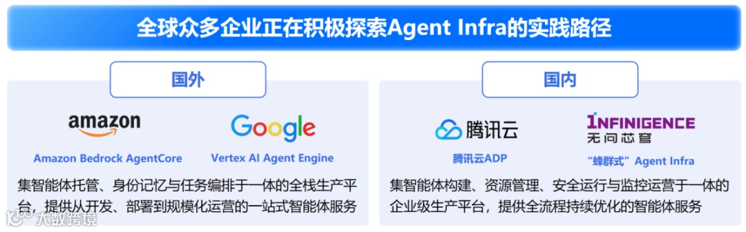 随着龙虾等智能体产品和应用的持续火爆,支撑其底层运行的基础设施能力变得越来越重要。国务院《关于深入实施“人工智能+”行动的意见》提出:到2027年新一代智能终端、智能体等应用普及率超70%,到2030年将超90%。智能体的大规模落地,远不止“接入一个大模型接口”这么简单——它需要能够支撑智能体规模化构建、部署、协同与运营的新型基础平台。在此背景下,智能体基础设施(Agent Infra)应运而生:它是支撑智能体规模化落地的综合性基础设施平台,通过提供统一的智能体编排、工具调度、记忆管理及运维治理等能力,为企业提供一站式、可信可控的智能体工程化落地解决方案。