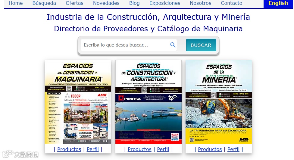 聚焦建筑、设计与矿业领域的垂直平台,完整覆盖设备、材料、配件及服务四大类目。其细分目录体系特别适合建筑类工业品企业开拓墨西哥市场。