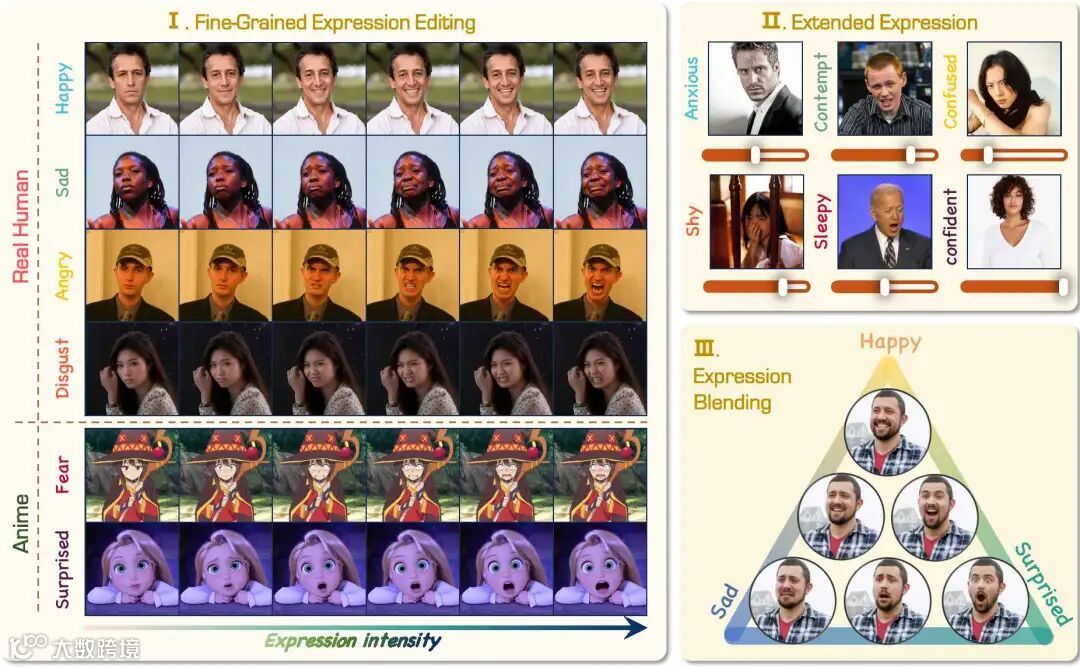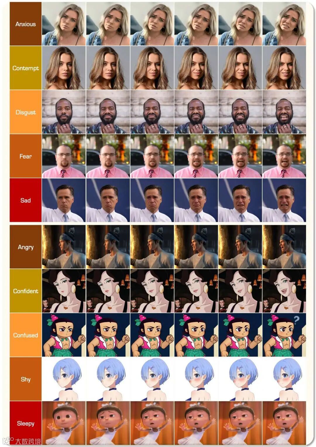 这一点并不简单。真人与动漫在外观分布、纹理风格和面部细节表达上存在显著差异,而细粒度表情编辑本身又要求模型同时处理表情控制与身份保持。因此,能够在两个域上都得到可用结果,本身就说明方法具备更强的适应能力。