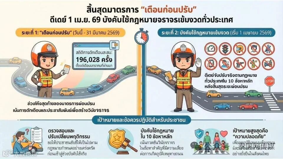 泰国警方最新通报,自2026年4月1日起,全国范围内将正式进入交通违法“严查严罚”阶段,针对一批高风险违法行为展开集中整治。
