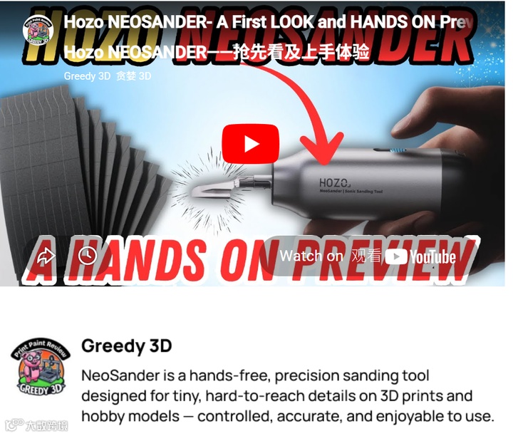 HOZO合作3D打印及模型制作社区的垂直领域KOL,通过实测视频展示NeoSander在具体场景的使用效果,增强潜在用户信任。
