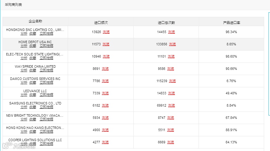 输入产品信息自动生成采购商名录,同步分析进口记录、合作供应商与采购国家分布。