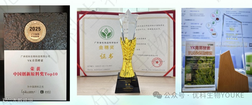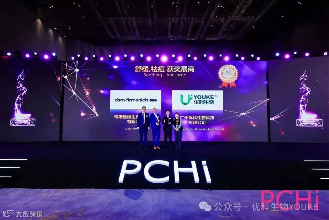 2026年3月18日,PCHi芳典奖颁奖盛典在杭州举行。经25位权威评委对产品安全性、创新性及市场前景的综合评审,“YK青蒿酵素”从众多原料中脱颖而出,荣膺舒缓祛痘金奖。