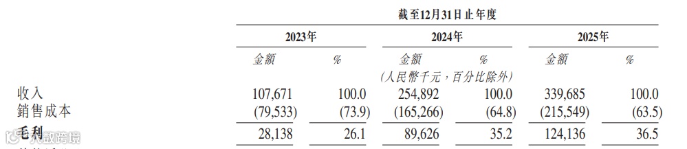 2023至2025年,公司收入从1.08亿元增至3.4亿元。2025年毛利率提升至36.5%,较2023年增长10.4个百分点。报告期内毛利实现显著增长,2025年达1.24亿元。同期公司推出人形机器人解决方案并获得订单,为持续增长奠定基础。