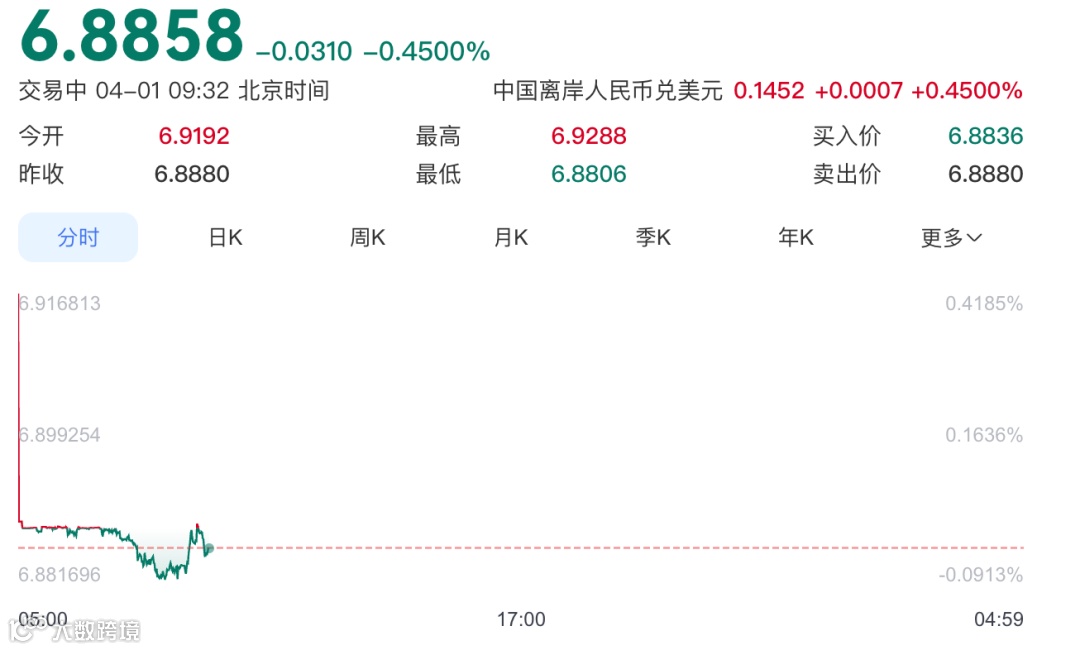 美元兑离岸人民币