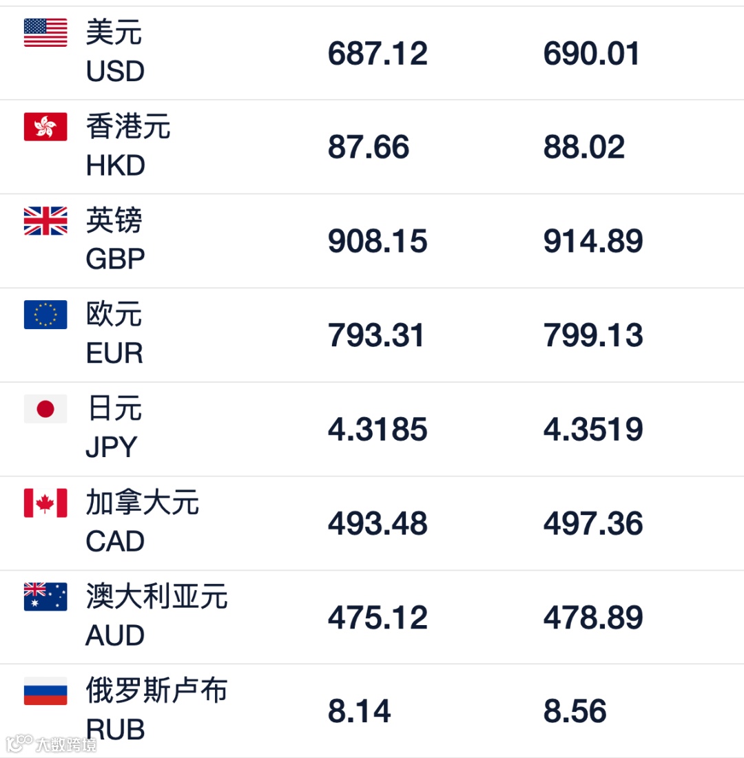 今日汇率