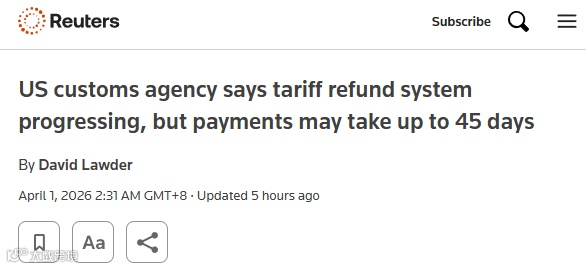 美国海关与边境保护局(CBP)于3月31日宣布,针对此前被最高法院判定征收存在问题的关税,已启动新关税退款系统开发。该系统当前完成度达60%-85%,退款申请将分阶段开放,审核至打款最长需45天。