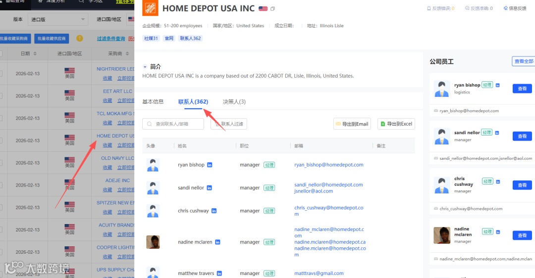 A:支持输入企业名称查询其进出口客户分布、交易规模及供应商关系。