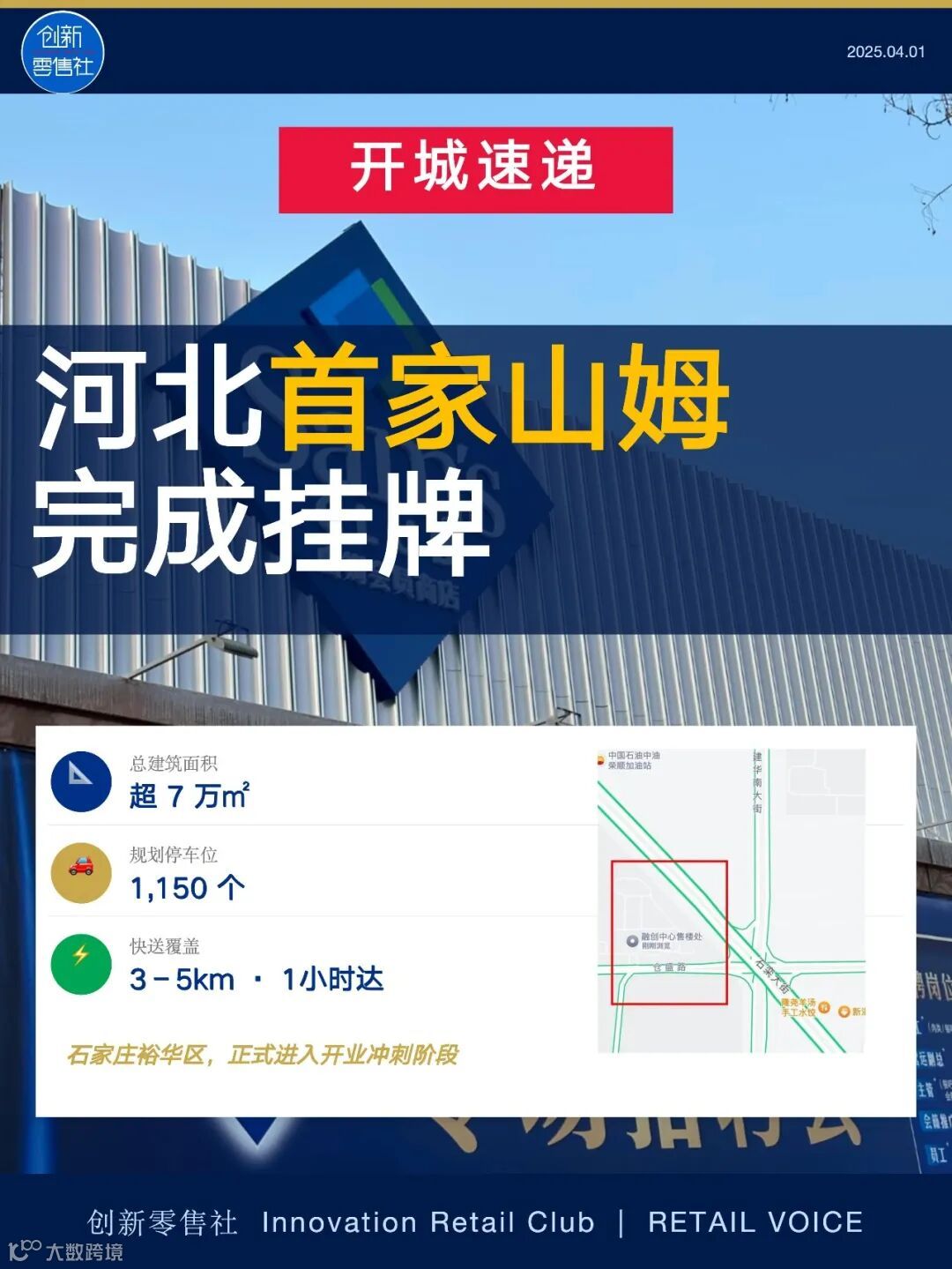3月30日,石家庄裕华区山姆会员商店完成品牌标识安装,作为河北首店正式进入开业冲刺阶段。