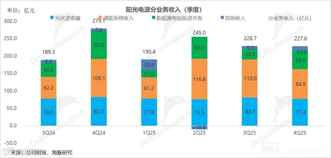 2026年3月31日晚,阳光电源发布2025年四季报显示,业绩显著低于预期,收入增长停滞,利润断崖式下滑。储能系统业务为主要拖累因素。