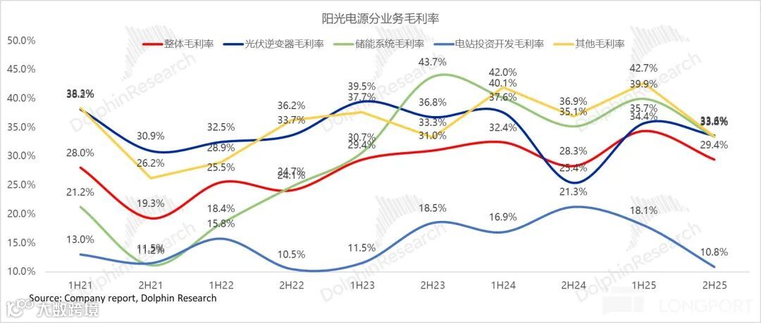 低毛利电站业务占比升至23%,拉低整体毛利率;光伏逆变器受原材料涨价影响,毛利率环比下滑2.1个百分点;海外营收占比63%情况下毛利率仍下滑,印证海外竞争压力实质性加大。