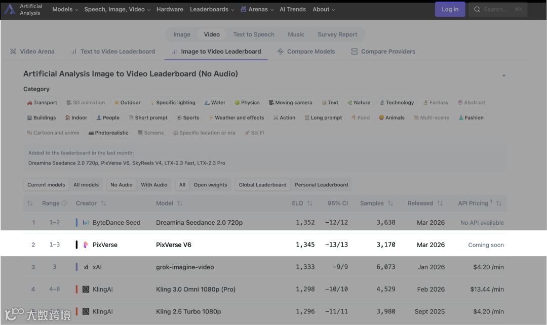 PixVerse V6突破碎片化镜头限制,通过连贯运镜、真实物理仿真与精准音效,实现失重、压迫、穿梭等沉浸式体验。在Artificial Analysis全球图生视频榜单中位列第二,仅次于Seedance 2.0。