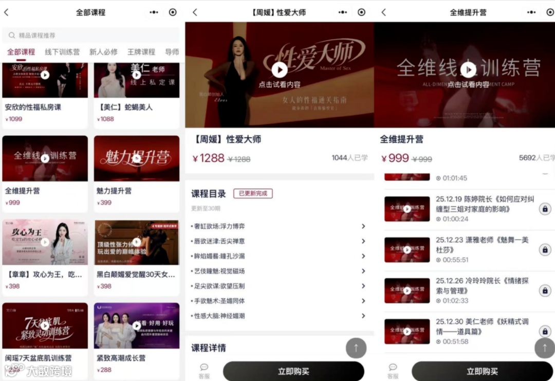 媒体监测发现,关联店铺"黑白颠性商学院"曾上架199元及9.9元课程,另有销售人员推销128元视频课。课名与价格频繁调整,反映销售链路处于动态变化中。