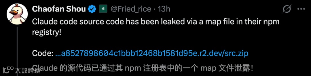 技术社区迅速行动,全球开发者对泄露代码展开深度解析。斯坦福大学安全专家Chaofan Shou的发现引发2200万次浏览,确认此次泄露源于npm注册表map文件配置漏洞。