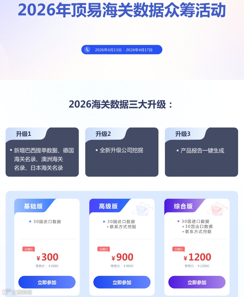 海关数据是外贸从业者的常用工具,但市面平台年费动辄上万,对个人及小型企业成本较高。现推荐顶易海关数据团购活动,最低300元/年即可高效挖掘海外优质采购商。