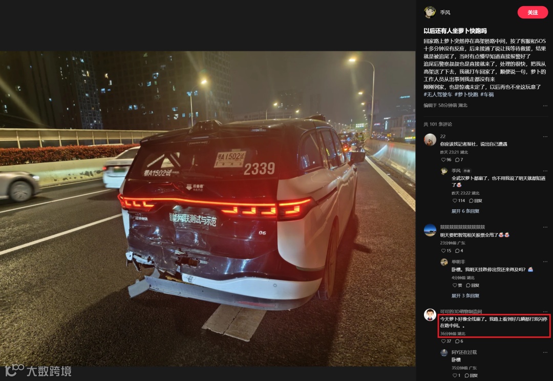 萝卜快跑,前脚迈向迪拜,后脚滞留在高架