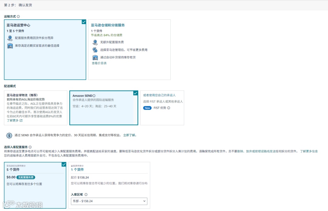 ■ 配送模式选择Amazon SEND