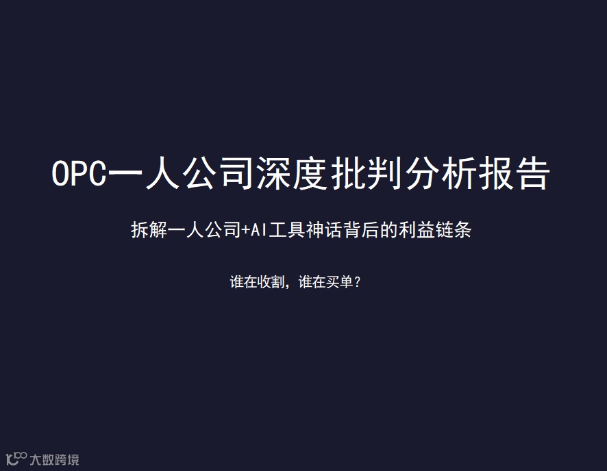 OPC(One Person Company)一人公司原为中性法律概念,指股东仅一人的有限责任商事法人。我国《公司法》早在2005年已承认其法律地位。但2025年底至2026年初,这一概念被包装成创业风口。