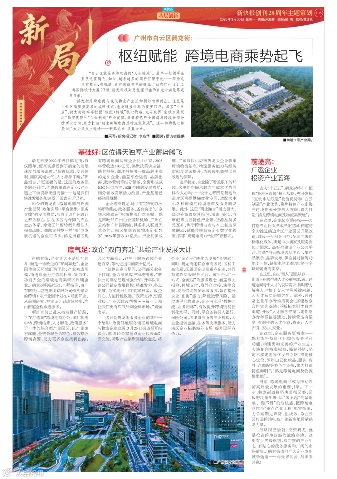 毗邻白云国际机场、白云站和广州国际港的区位优势,使辖区集聚76家跨境物流企业(2025年营收43亿元)。广东够快供应链等企业筑牢物流基底,为跨境电商提供高效履约保障。同时,鹤边改造片区提供梯度化空间,与白云区皮具箱包、美妆等特色产业带深度联动,探索“跨境电商+产业带”新模式。