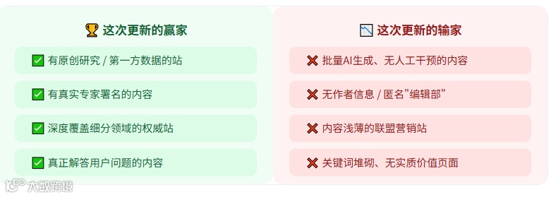本次核心更新与谷歌AI摘要(AI Overviews)功能扩张同步,对传统自然搜索流量的冲击显著强于以往。