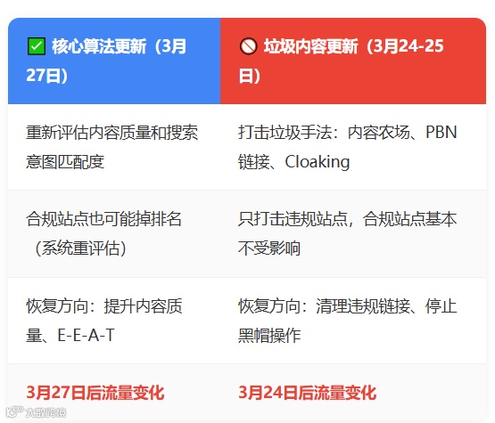 2026年3月27日,谷歌发布年度首个“广泛核心更新”。此次更新引发全球网站排名剧烈波动,并紧随3月24日“垃圾内容更新”之后,形成双重影响。