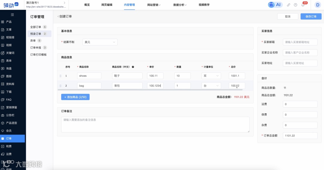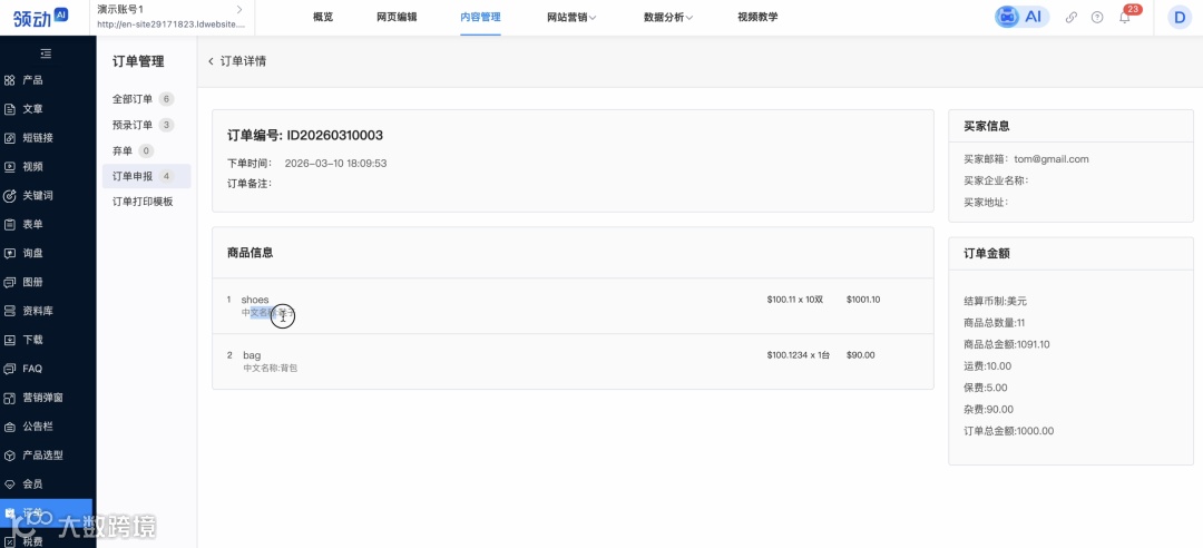 操作便捷:实现独立站从获客、接单到报关的一站式流程,避免多系统切换。