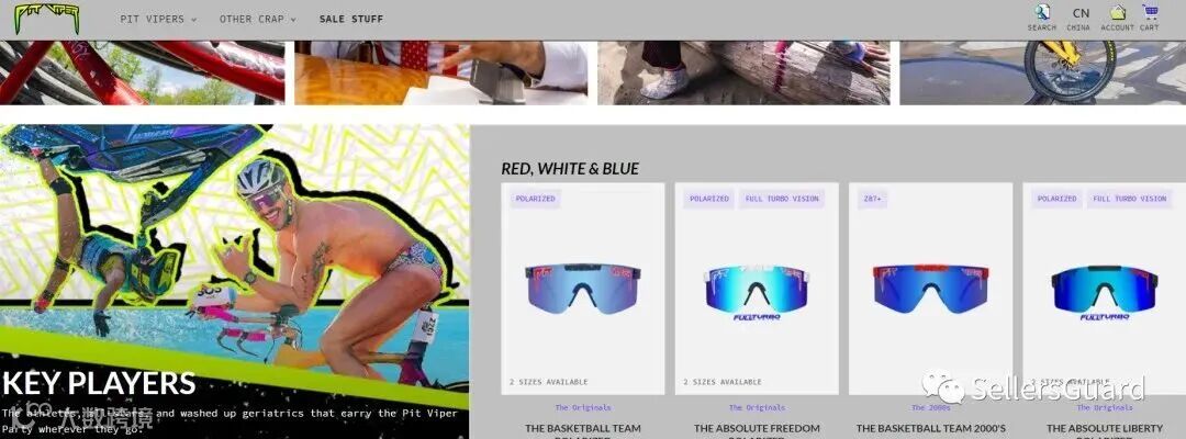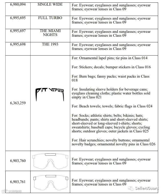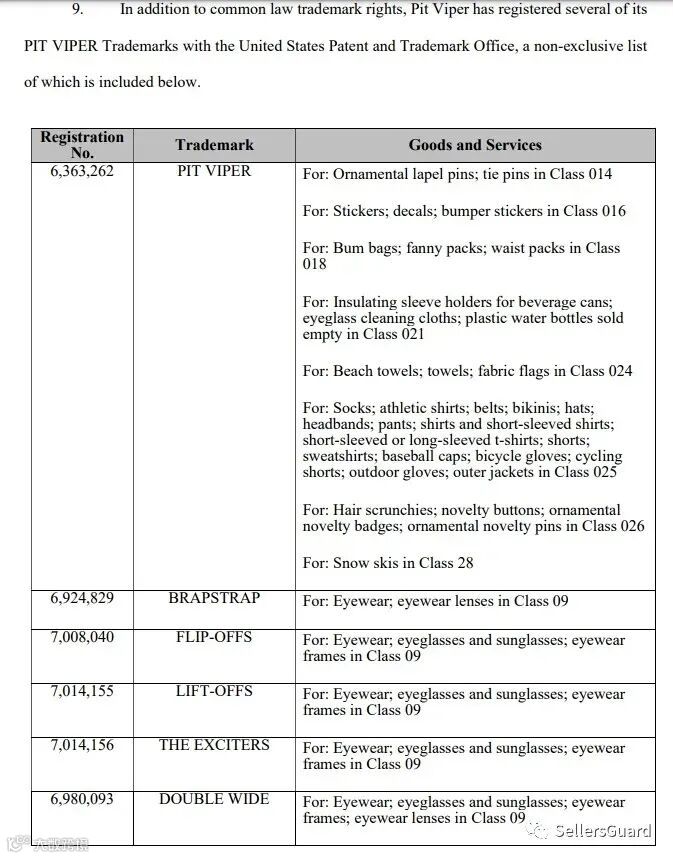 原告公司Pit Viper, LLC注册的文字和图案商标,不能出现在产品中,否则有被起诉的风险。
