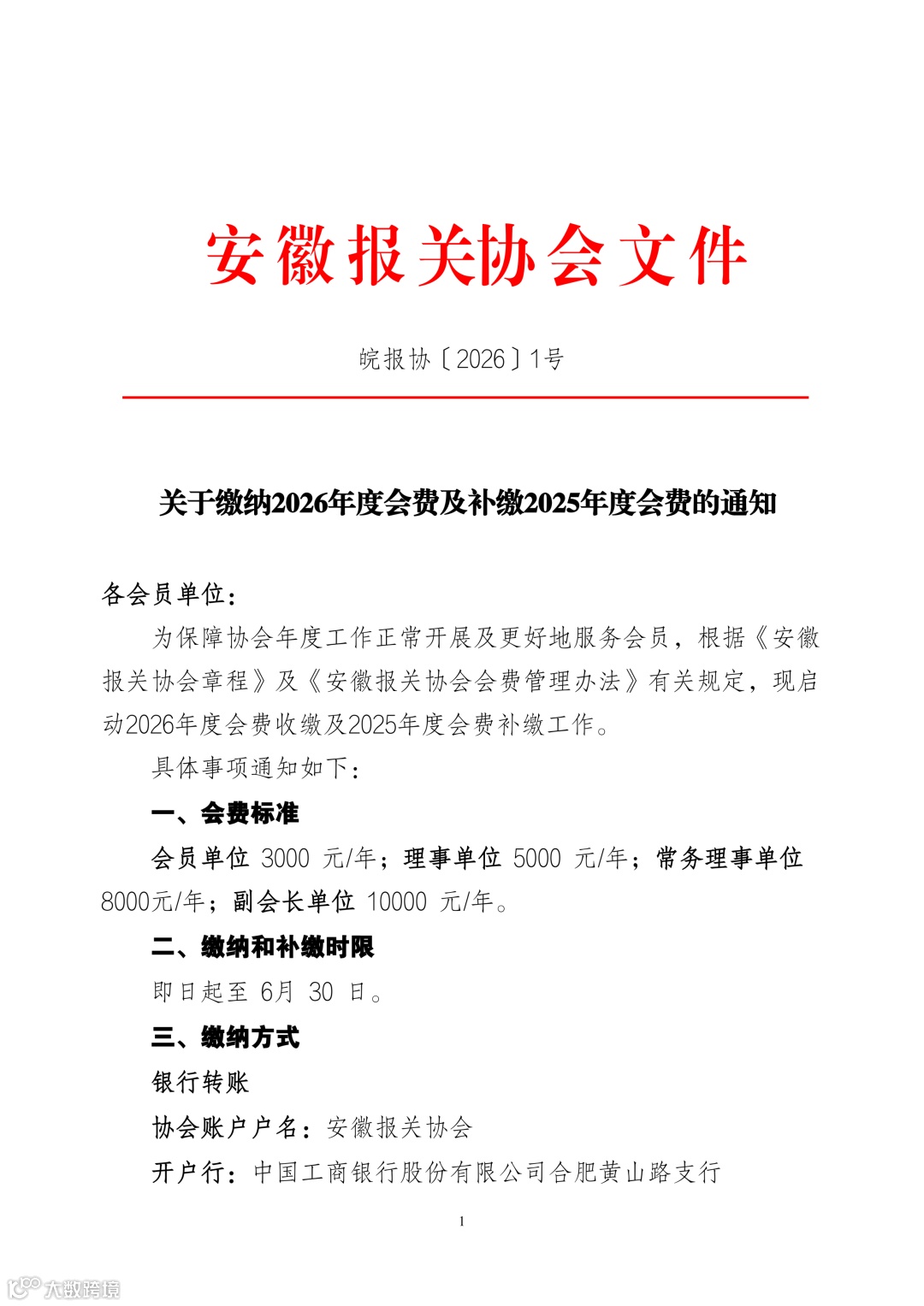 【协会文件】关于缴纳2026年度会费及补缴2025年度会费的通知