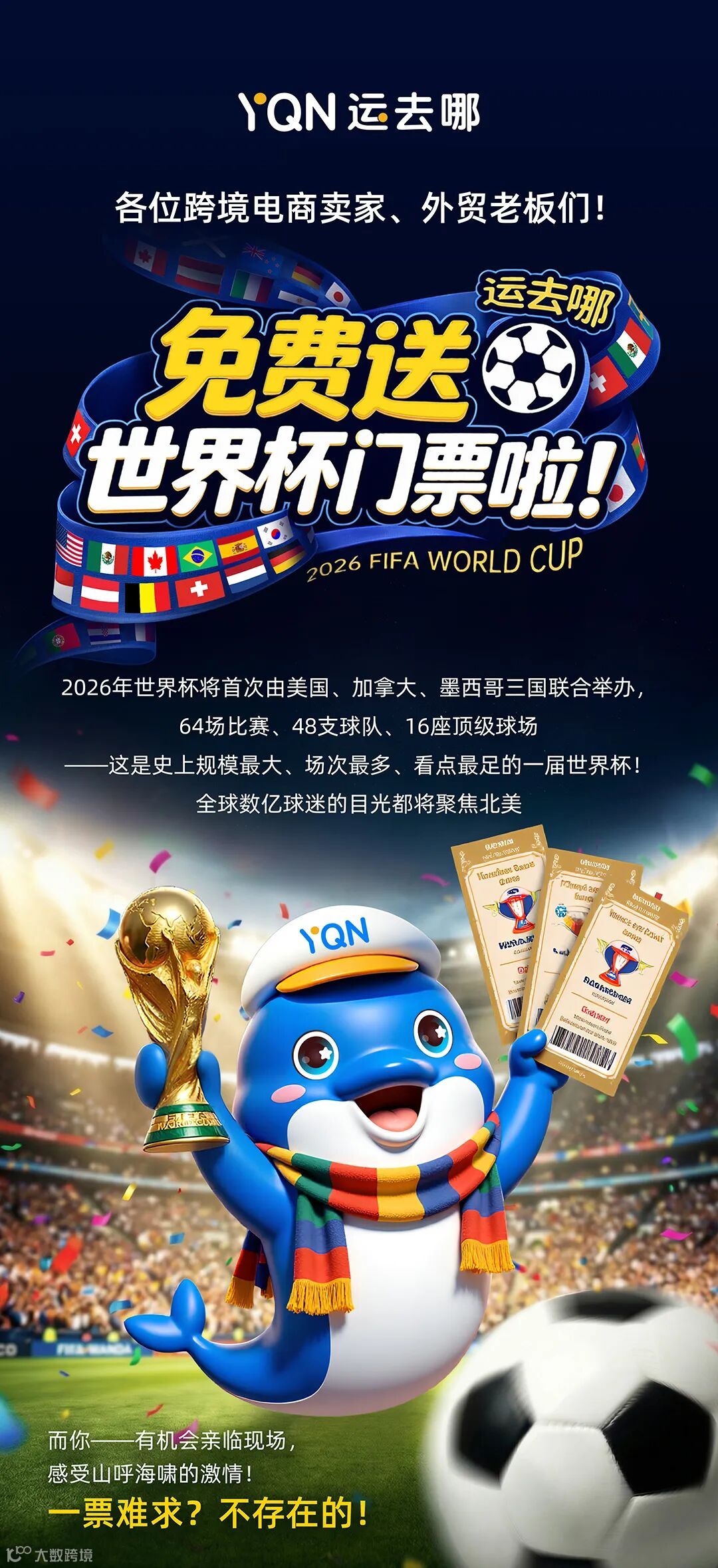 不开玩笑,2026世界杯门票免费送!运去哪邀你亲临美加墨,见证足球巅峰时刻!