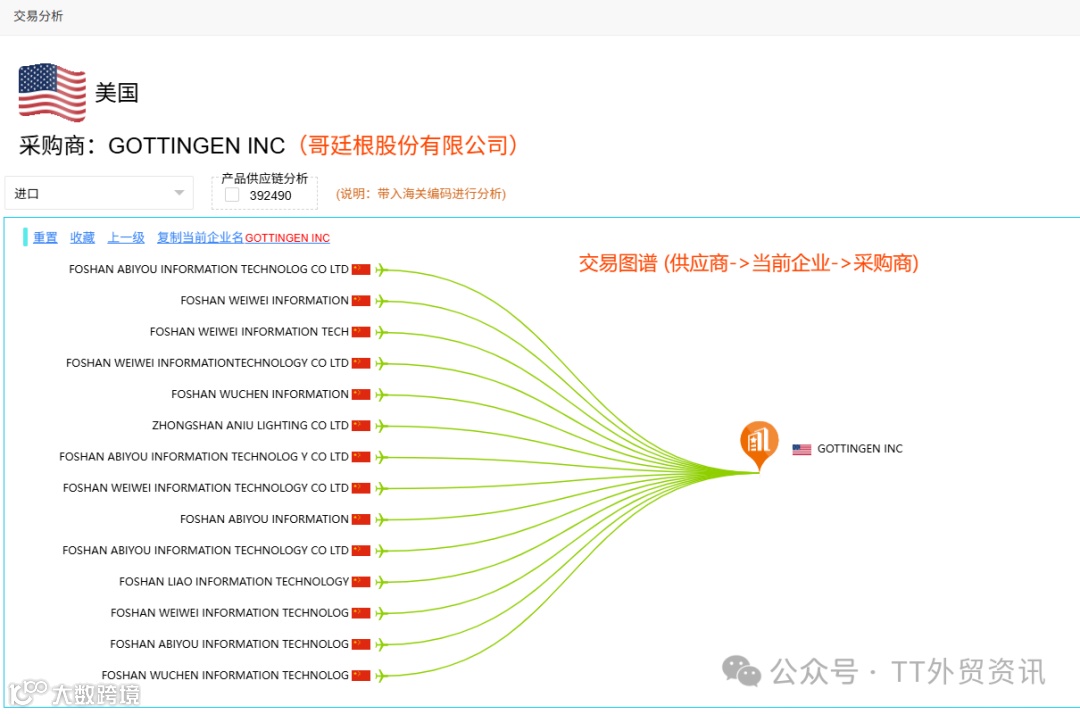 2、交易图谱:清晰呈现主要竞争对手,帮助您精准锁定需要重点关注和研究的同行。同时,还能揭示采购商的客户网络,为您挖掘更多潜在客户。