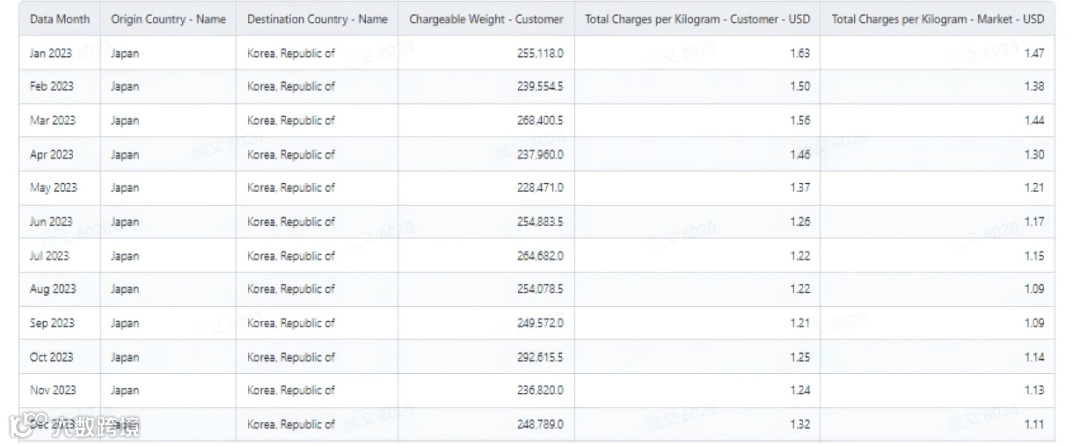 为验证假设,企业利用CargoIS时间轴功能,调取了2023年日本-韩国航线的月度数据,追踪自身份额、运价与市场平均运价的动态关系: