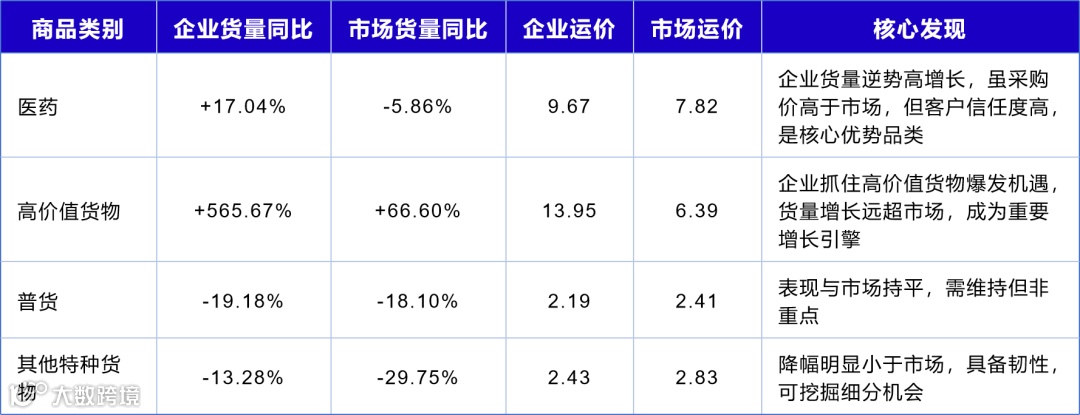 结论:企业应将资源向医药、高价值货物等自身优势明显、增长快的领域倾斜,同时关注特种货物中的潜力点。