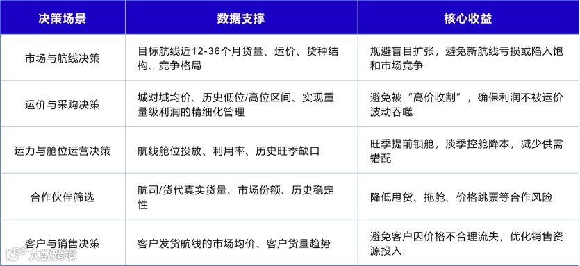 战略层面,为企业提供了与航司谈判的“数据弹药”,将已实现的成本优势固化为长期包板协议,实现可持续的降本增效。这正是数据驱动决策的生动体现。